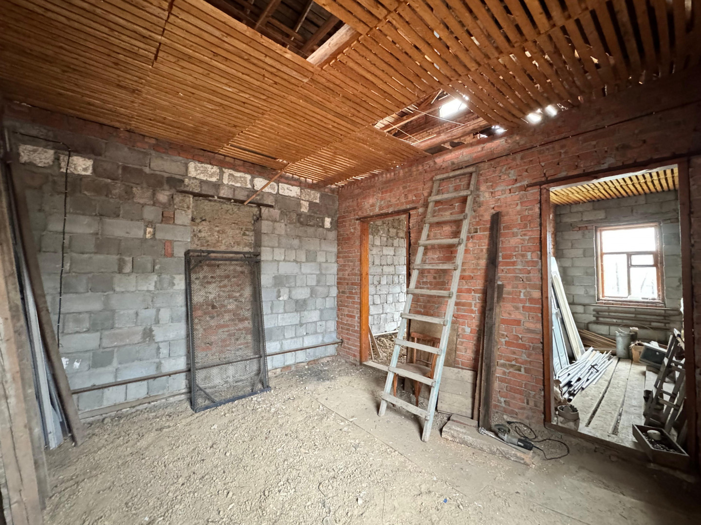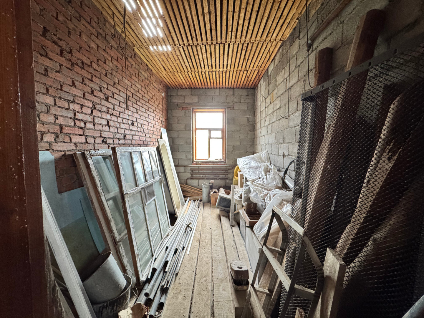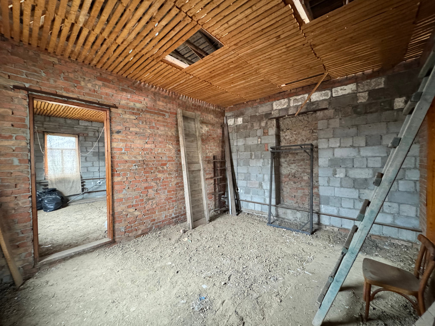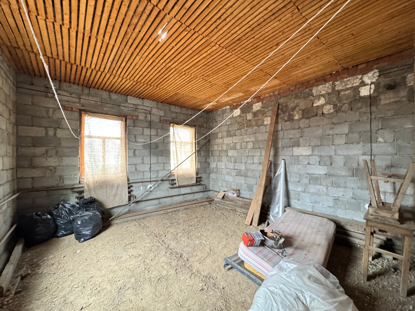 Что внутри:<ul><li data-list="bullet"><span class="ql-ui" contenteditable="false"></span> дом разделен на 2 части с отдельными входами - первая часть жилая (4 жилых комнаты, кухня, ванная комната, туалет, коридор), вторая часть - стройвариант. Идеально подходит для проживания двух семей;</li><li data-list="bullet"><span class="ql-ui" contenteditable="false"></span> дом одноэтажный с большой мансардой;</li><li data-list="bullet"><span class="ql-ui" contenteditable="false"></span> раздельный санузел с отличной сантехникой;</li><li data-list="bullet"><span class="ql-ui" contenteditable="false"></span> просторная прихожая;</li><li data-list="bullet"><span class="ql-ui" contenteditable="false"></span> вся необходимая мебель и бытовая техника для проживания;</li><li data-list="bullet"><span class="ql-ui" contenteditable="false"></span> газовое отопление (котёл);</li><li data-list="bullet"><span class="ql-ui" contenteditable="false"></span> центральное водоснабжение, канализация - выгребная яма.</li></ul>