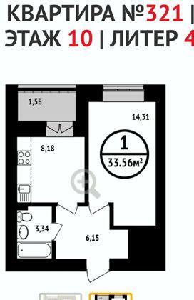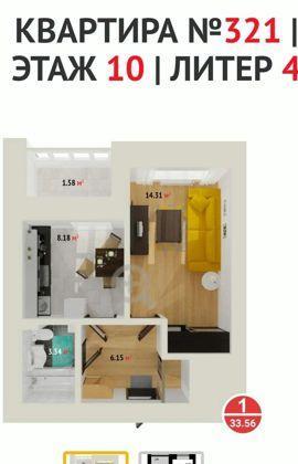 Однокомнатная квартира 33,60 м2 по ул. 8 Марта 1 за 3150000 руб. |