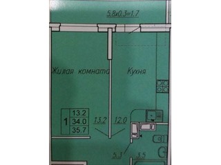 Однокомнатная квартира 35,70 м2 по ул. Нансена 83 за 3200000 руб. |