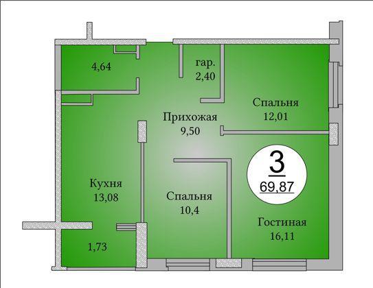 Трехкомнатная квартира 70,00 м2 по ул. Берберовская 2/101с1 за 5150000 руб. |
