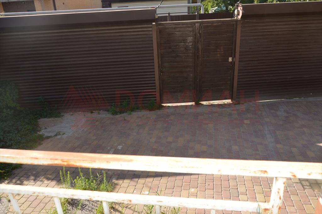 Во дворе плитка. Забор из лиственницы. Ролл ворота. Можно поставить две машины.