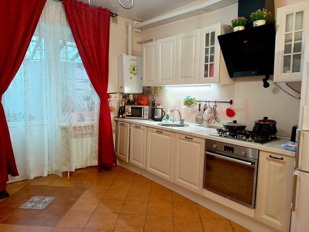 - На первом этаже современная кухня-гостиная с встроенной техникой: газовая плита, посудомойка, духовой шкаф, холодильник — всё для вашей кулинарной фантазии!