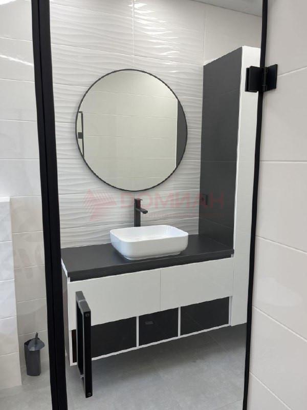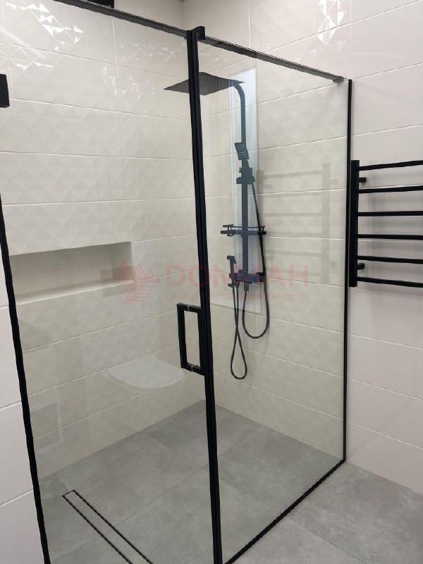 Совмещенный санузел: Просторная душевая кабина, инсталляция, подсветка, и шкаф для хранения