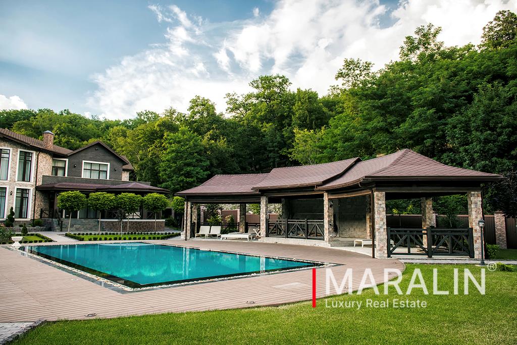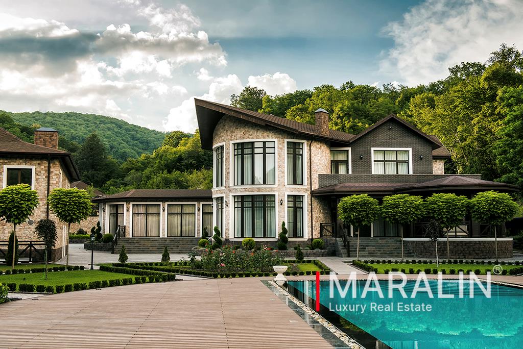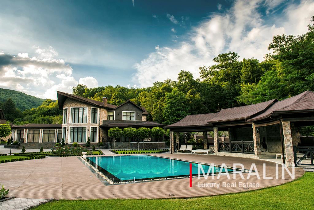 | По этому объекту вам ответит Маралин Алексей.Элитное домовладение, расположенное на живописном склоне, в лесном массиве, вблизи поселка Ольгинка Туапсинского района Краснодарского края. В комплекс домовладения входят жилой коттедж (642.4 м2), гостевой дом (238.3 м2), дом для охраны и персонала (118.2 м2), конюшня, зона отдыха с открытым бассейном, вертолетная площадка. В жилом доме предусмотрены четыре спальни с индивидуальными санузлами и гардеробными, просторная кухня-столовая, гостиная, каминный зал, кабинет. Обособленная wellness зона вмещает в себя бассейн, тренажерный зал, парная. Гостевой дом вмещает три комнаты, кухню и санузел. Бесперебойное жизнеобеспечение дома обеспечивает современное оборудование, а также собственные подстанции коммуникаций. Размер земельного участка составляет 136 соток.По всему периметру домовладения ведется круглосуточное видеонаблюдение и охрана. Все фото реальные. Подробно об объекте на сайте компании на Маралин Ру. Узнайте сколько стоит Ваша недвижимость! Бесплатная консультация и выезд специалиста. |